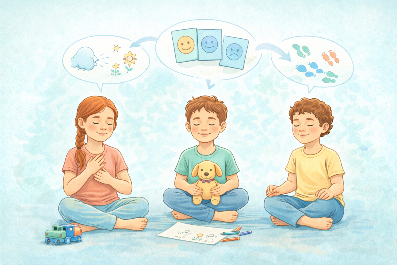 Exerciții ghidate și activități simple, concepute pentru a ajuta copiii să se relaxeze, să își recunoască emoțiile și să se simtă în siguranță.